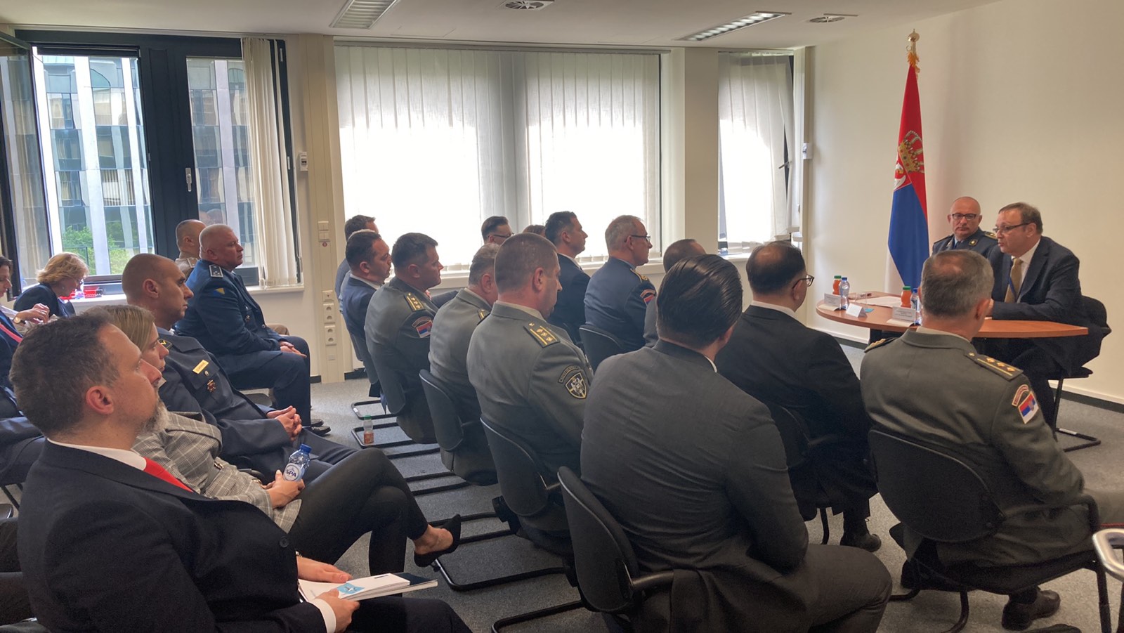 Polaznici 11. klase Visokih studija bezbednosti i odbrane Univerziteta odbrane u okviru studijskog putovanja posetili su evropske i evroatlantske političko-bezbednosne institucije sa sedištem u Briselu. Delegacija UO i VSBO posetila je sedište NATO, Službu za spoljne odnose Evropske unije, kao i diplomatska predstavništva Republike Srbije u glavnom gradu Kraljevine Belgije. ![]() Polaznici VSBO imali su priliku da se upoznaju sa tekućim i budućim aktivnostima NATO i EU u svetlu implementacije aktuelnih strategijskih koncepata tih organizacija. ![]() Tokom poseta Šef Misije Republike Srbije pri NATO ambasador Branimir Filipović i šef Vojnog predstavništva u okviru Misije pukovnik Milan Ranković organizovali su brifing za polaznike VSBO, kao i za članove delegacije Univerziteta odbrane o partnerskoj saradnji Srbije i NATO. ![]() U delegaciji Univerziteta odbrane i VSBO su i rektor Univerziteta odbrane general-potpukovnik vanr. prof. dr Goran Radovanović, načelnik Škole nacionalne odbrane "Vojvoda Radomir Putnik" pukovnik Mićo Suvajac i načelnik VSBO pukovnik Branko S. Mišić. ![]() Delegacija Univerziteta odbrane i VSBO tokom studijskog putovanje posetila je Pariz i vojno-obrazovne i političko-bezbednosne institucije Republike Francuske. Studijsko putovanje VSBO u zemlje Zapadne Evrope se realizuje svake akademske godine na osnovu Programa usavršavanja, sa ciljem upoznavanja sa sistemima kolektivne i kooperativne bezbednosti i odbrane, kao i sa nacionalnim sistemima zemalja koje pripadaju tim sistemima. |